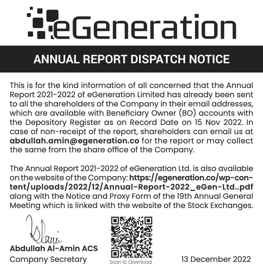eGeneration Annual Report dispatch