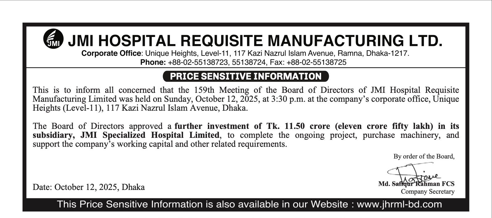 JMI HOSPITAL REQUISITE MANUFACTURING LTD. Price Sensitive Information.
