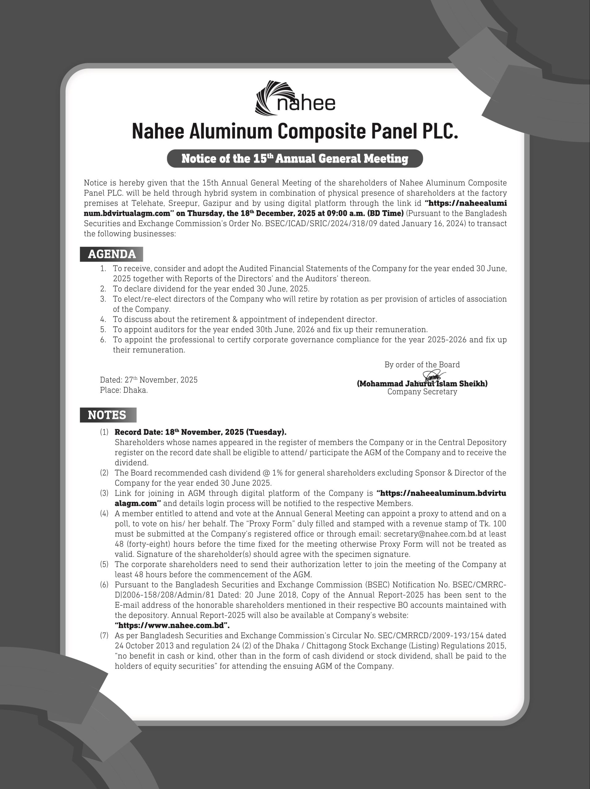 Nahee Aluminum Composite Panel PLC AGM Notice