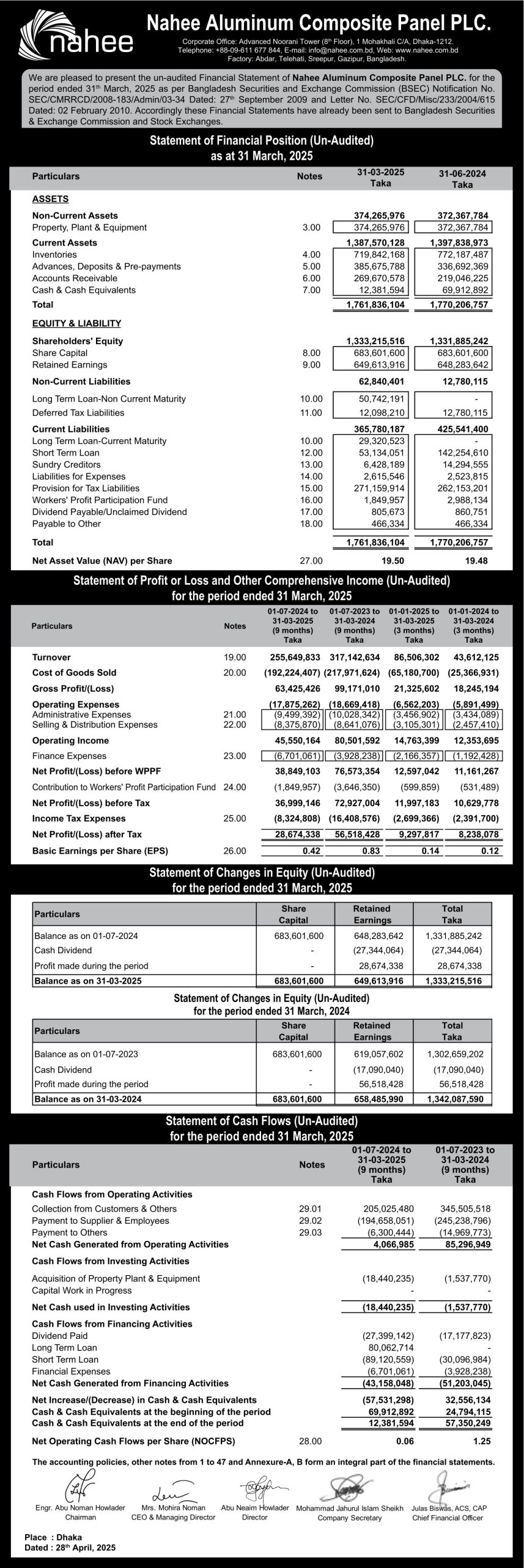 Q3 PSI of Nahee Aluminum Composite Panel PLC Financial Statements