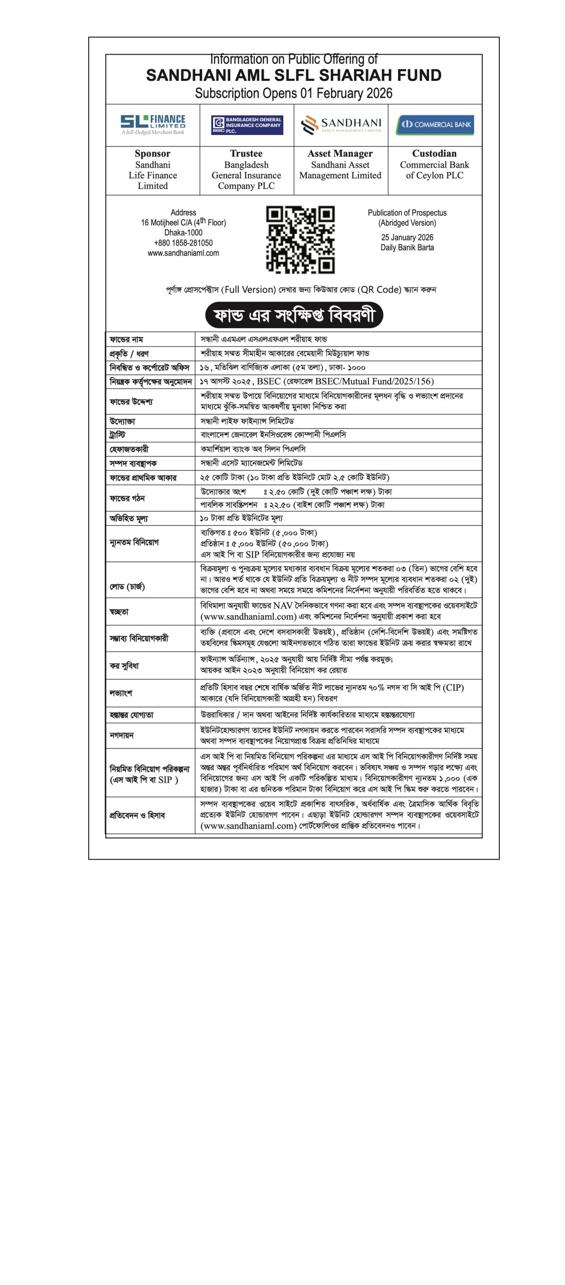 Sandhani AML SLFL SHARIAH FUND Public Offering