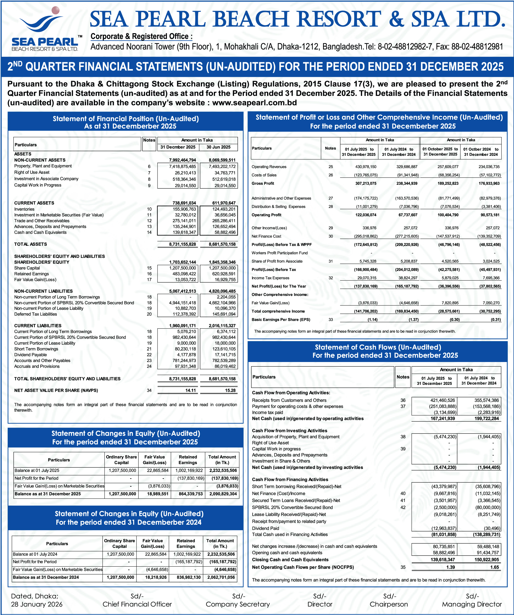 Sea pearl Beach Resort & Spa Ltd 2Q Financial Statements